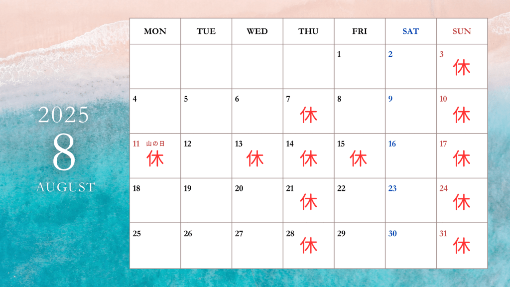 さて、8月の営業案内ですが8/13-15はお盆休みをいただきます。緊急時は対応できる時間帯もありますので、公式LINEにてお問い合わせください🌱