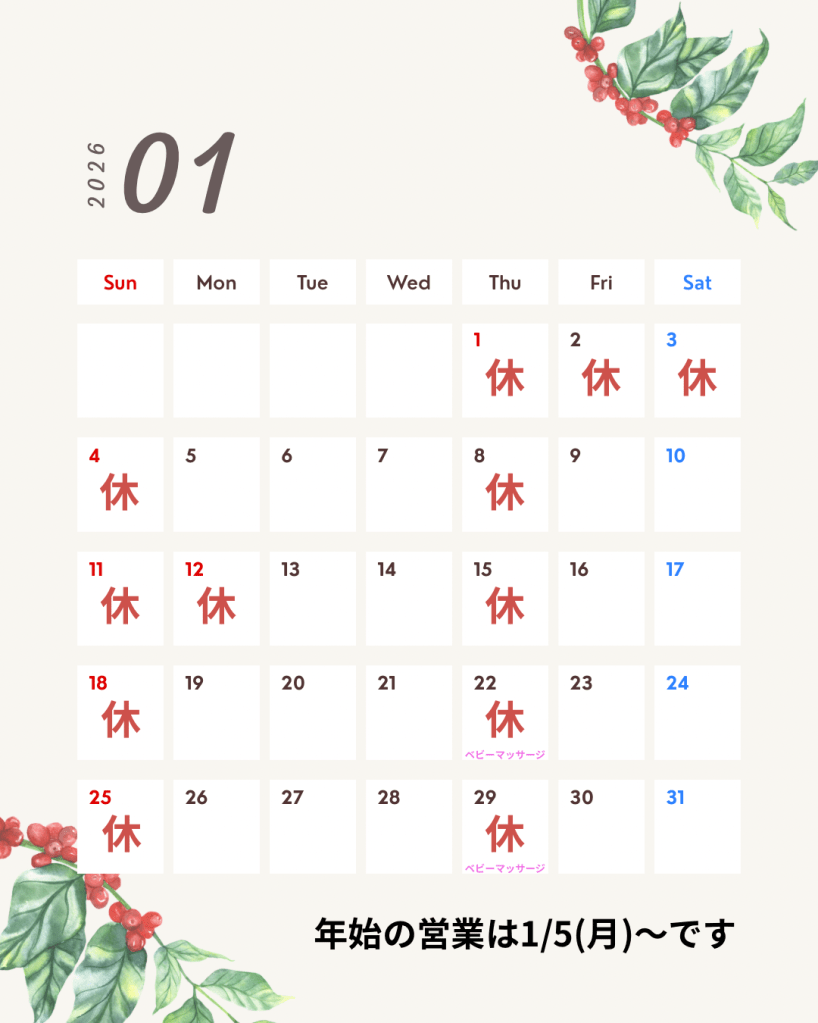 さて、年末年始のおやすみは12/30〜1/4となつまております。年始は1/5(月)からの営業です。